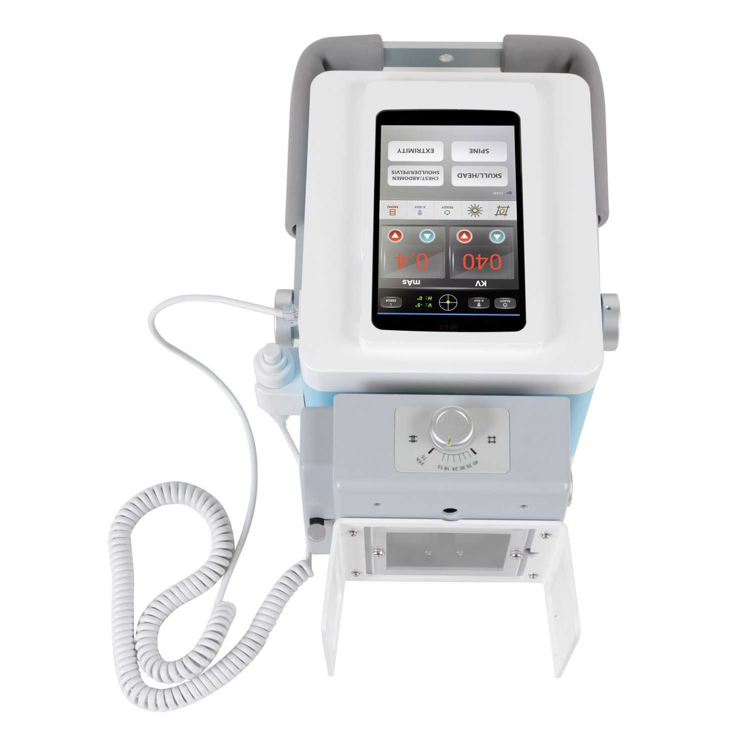The 7-inch touchscreen walks techs through exposure settings without fumbling with analog dials. Rapid kV rise time cuts patient exposure by eliminating the voltage ramp-up delay you get with older portable units. The short version: you’ll get consistent shots faster, whether you’re imaging in the ICU or the back of a truck.