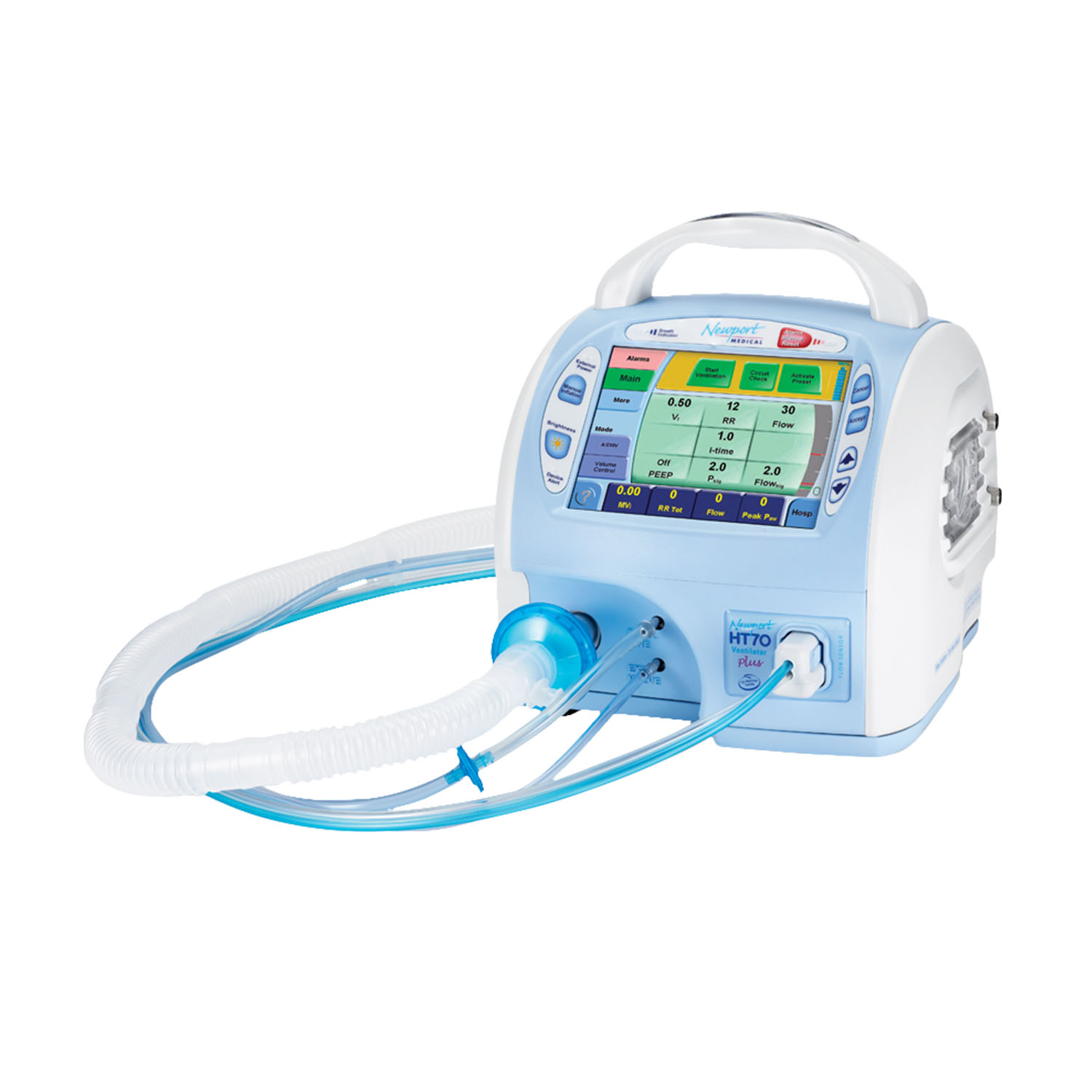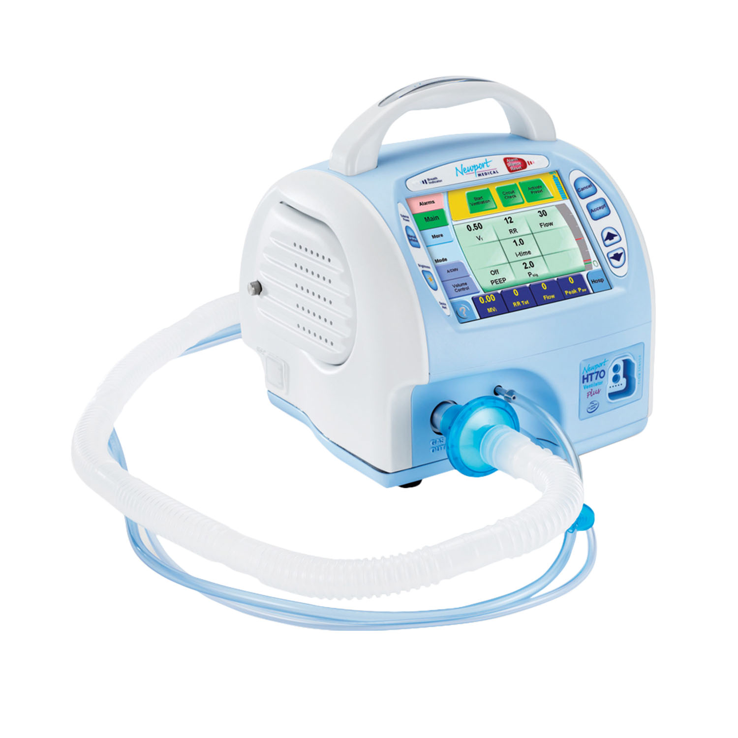 The Newport HT70 Plus handles patient ventilation from 5 kg pediatric cases through adults using a micro-piston pump that works across transport, acute.