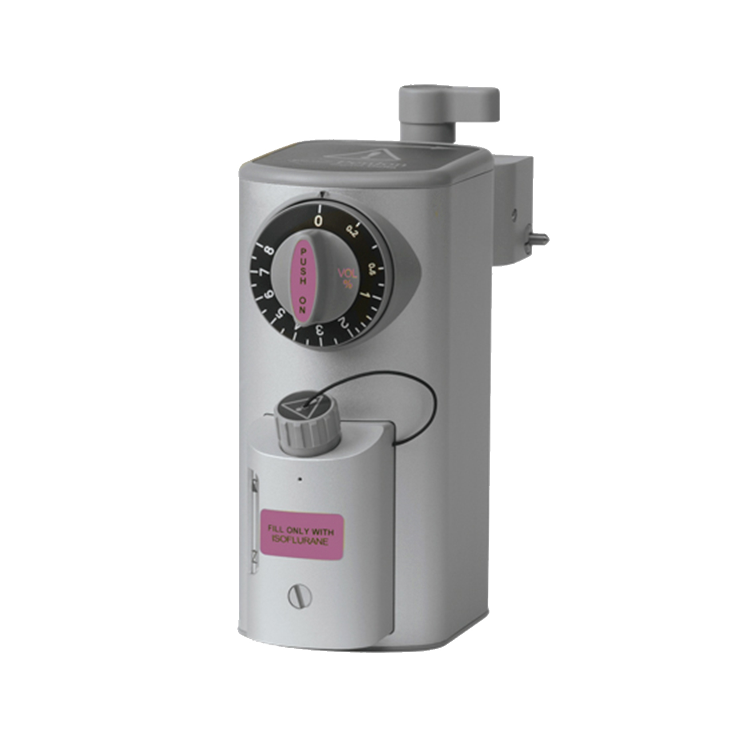 Agent-specific models are available for Isoflurane, Sevoflurane, Halothane, and Ethrane (Enflurane). At roughly 6 kg, the compact form factor fits existing Vapor 19 mount configurations without requiring machine modifications.
