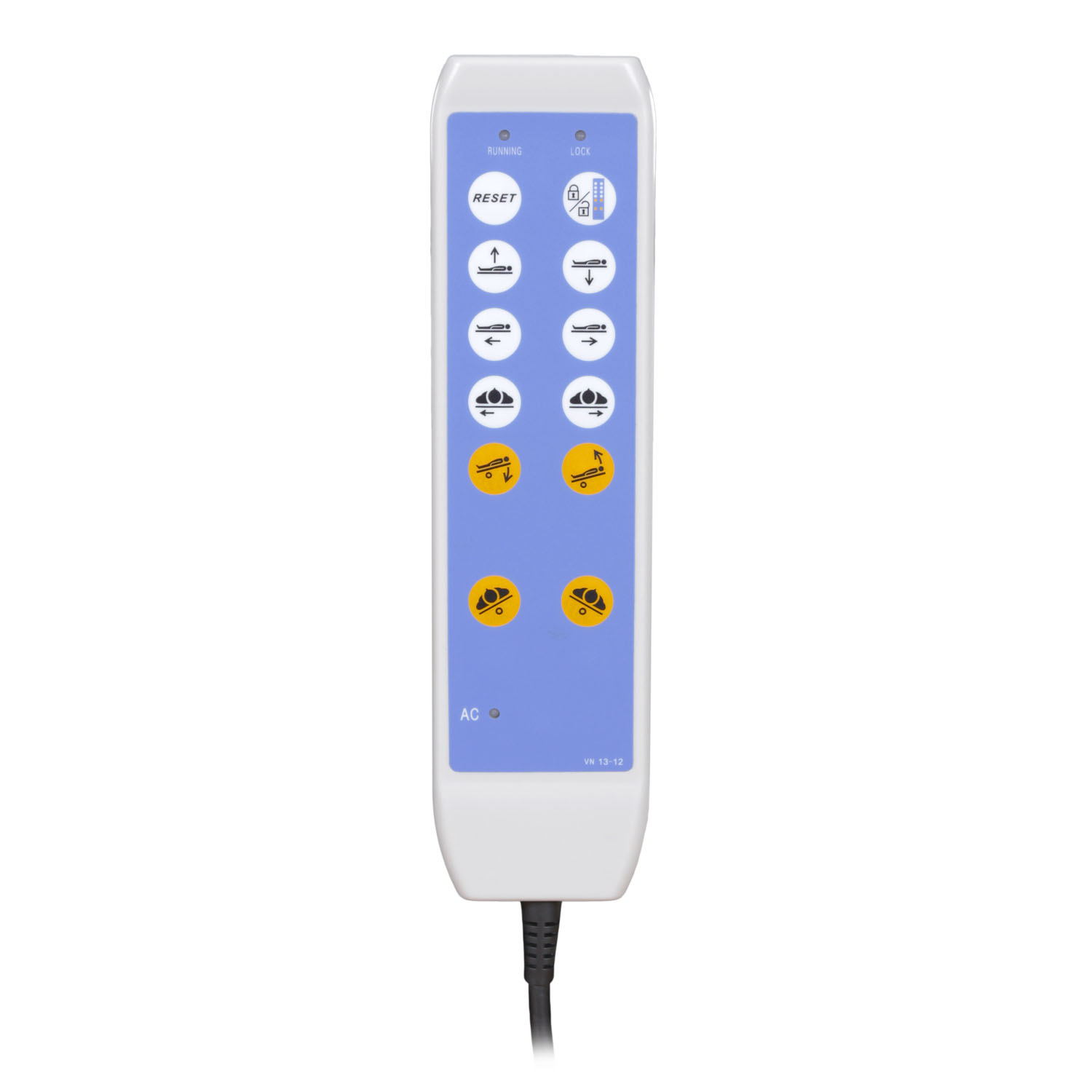 In practice, the 661-pound weight capacity handles bariatric patients while maintaining full articulation up to 500 pounds. The onboard control panel keeps essential functions at your fingertips, while the included handheld remote gives your team positioning control from anywhere in the room. Worth noting: the brake-equipped casters make it easy to reposition between cases without wrestling a heavy table.