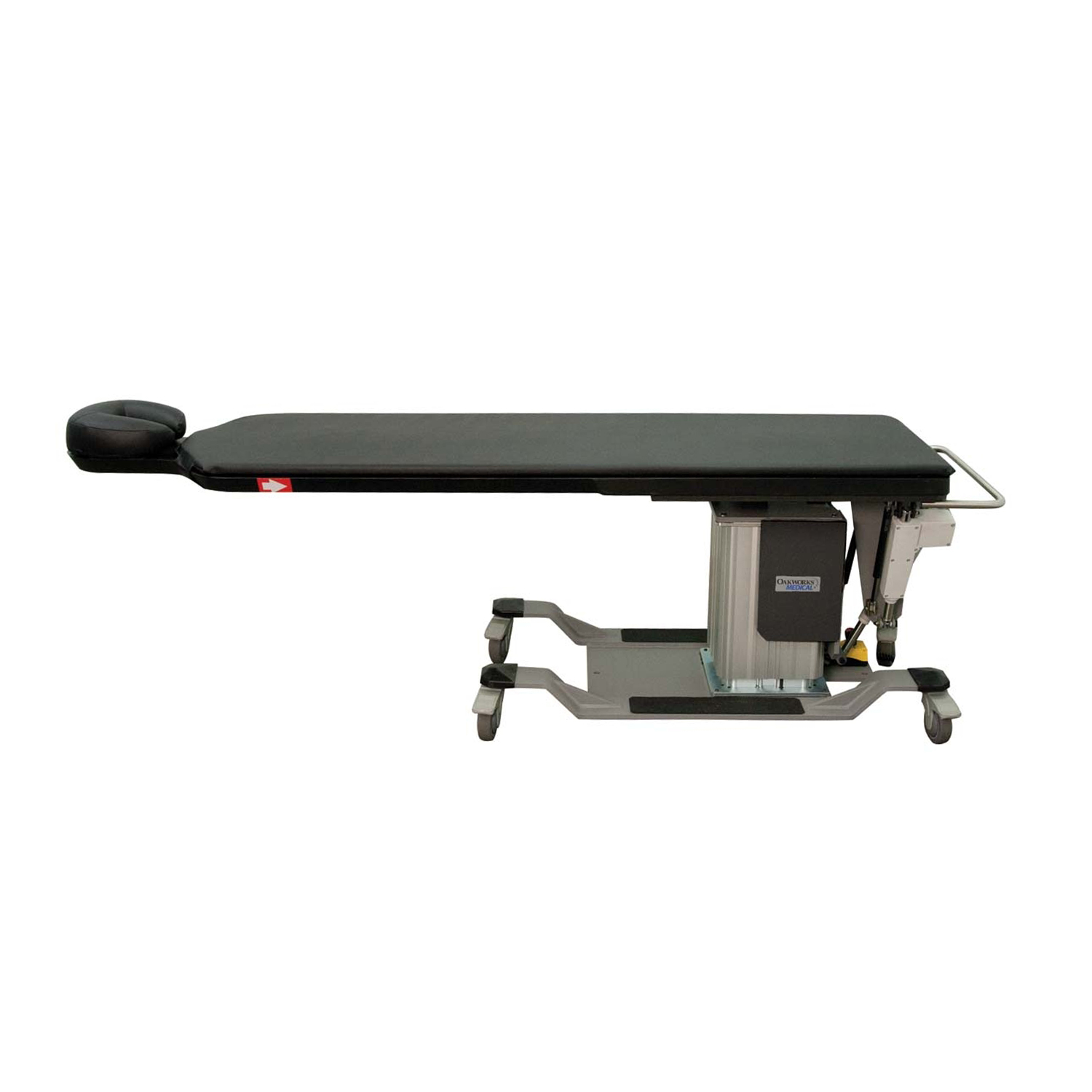 DRE Delphi CF Float Top C-Arm Table features floating carbon-fiber top for unobstructed imaging. Five-axis powered positioning with 661 lb capacity.