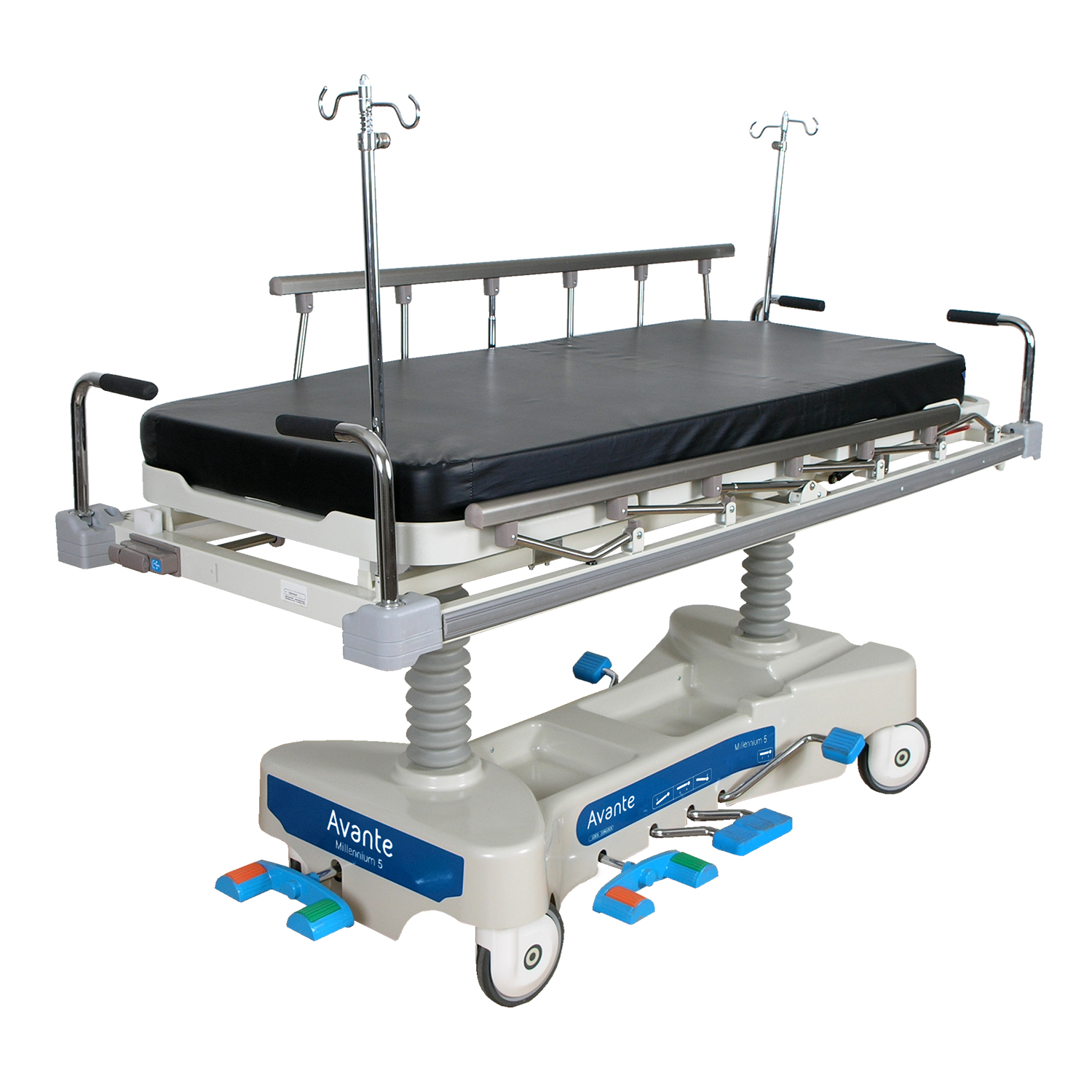 The Millennium 5’s fifth-wheel steering system gives you tight-radius turns that standard four-wheel stretchers can’t match. Worth noting when you’re navigating crowded hallways or positioning in cramped treatment areas.