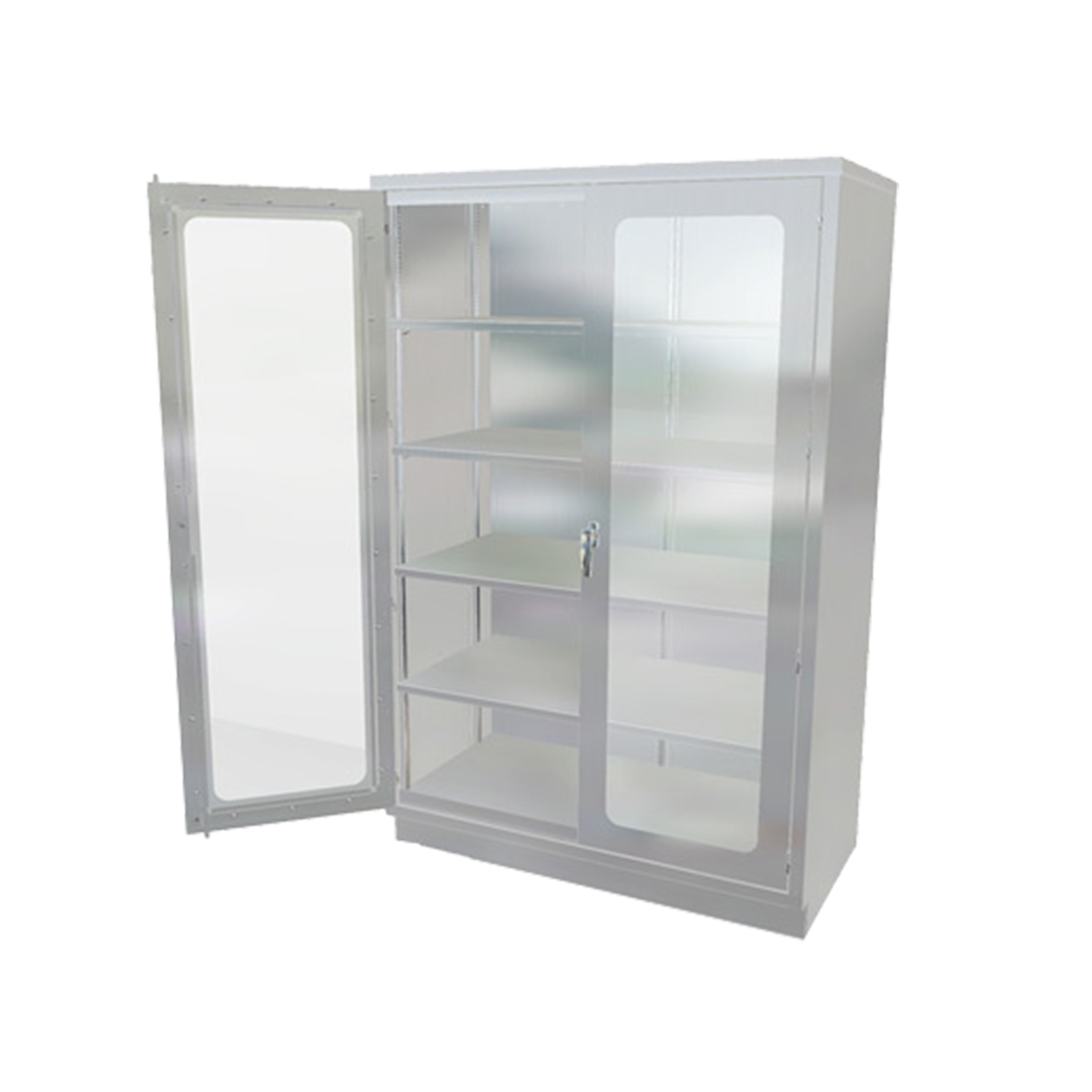 Tempered glass doors let staff quickly identify supplies without opening the cabinet, reducing contamination risk during procedures. The locking mechanism secures controlled substances and expensive instruments. Worth noting: the glass panels are double-thickness at 3/16″, so they won’t shatter under the pressure of busy OR schedules.