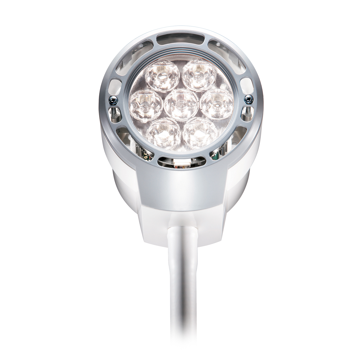 The Vista LED delivers 55,000 lux at 24 inches with virtually zero radiant heat, eliminating the hot spots that can make extended procedures uncomfortable for both clinicians and patients. Unlike traditional halogen exam lights that generate significant heat buildup, this LED array maintains consistent color temperature throughout dimming cycles.