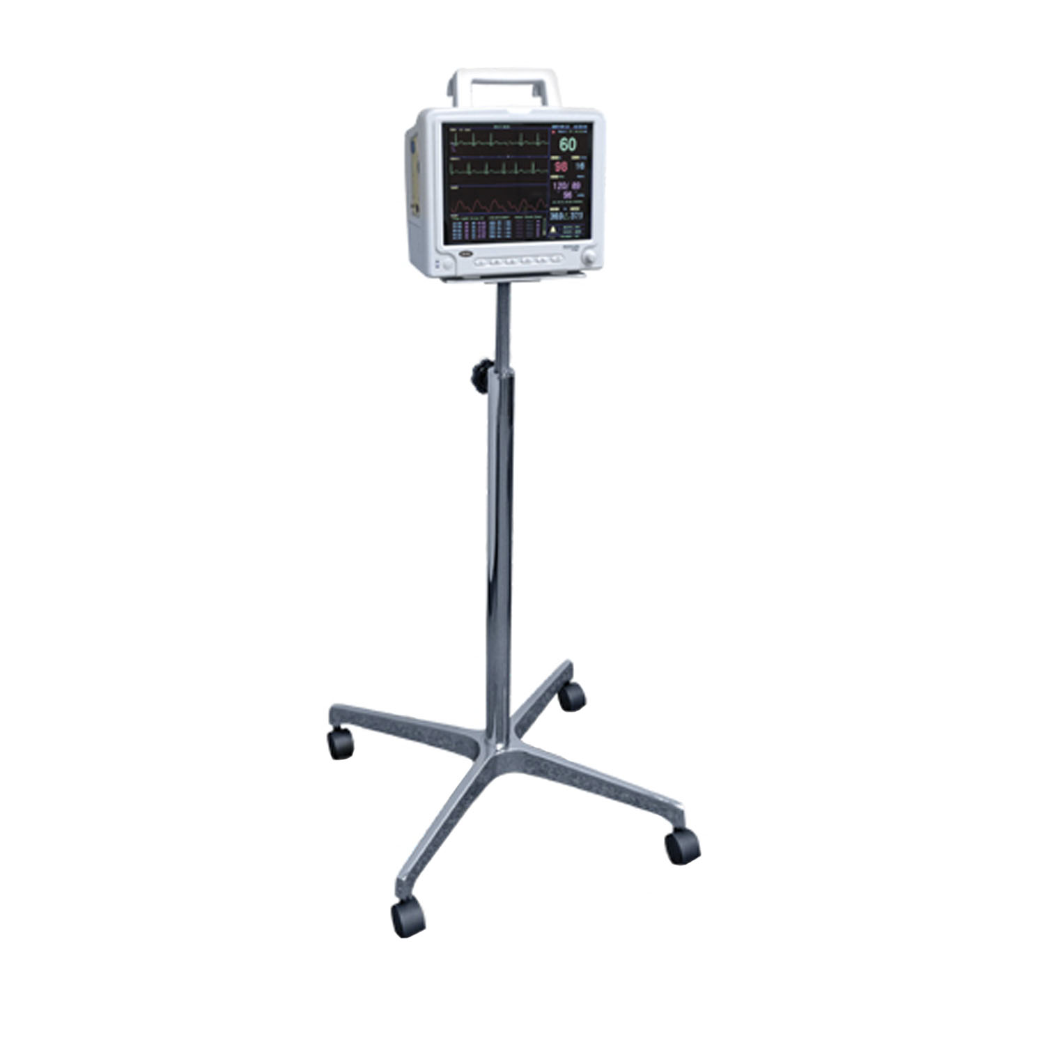 Multi-lead ECG monitoring displays up to four configurable waveforms simultaneously, while the built-in thermal printer captures both numeric data and waveform strips without hunting for separate equipment. The upside: your staff gets immediate documentation right at the bedside. Color-coded alarms with recall for the last 16 critical events help you spot patterns and respond faster during critical situations.