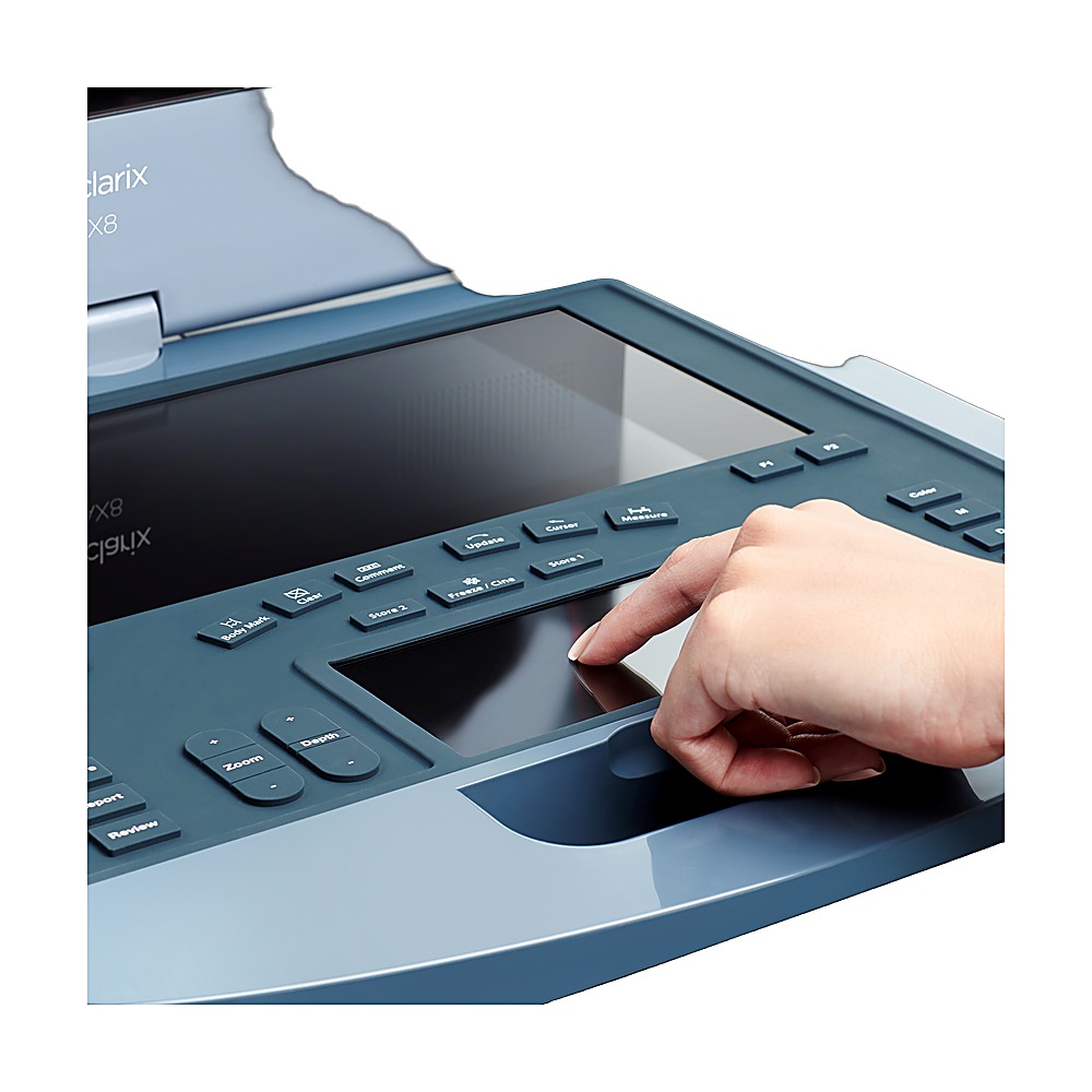 The Edan Acclarix AX8 delivers solid portable ultrasound performance with practical workflow features for point-of-care imaging. Three active transducer ports let you switch between probes instantly without disconnecting cables, which cuts down exam time significantly. The dual-screen setup separates imaging functions from controls effectively. Your primary 15″ display stays dedicated to patient images while the secondary 10″ touchscreen handles all your system adjustments and presets.