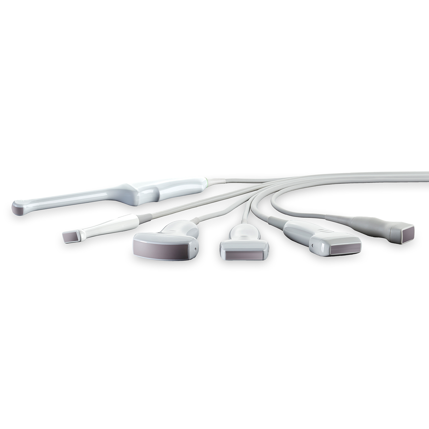 Portable ultrasound system with three active transducer ports, dual touchscreen controls, and practical features for point-of-care imaging workflows.