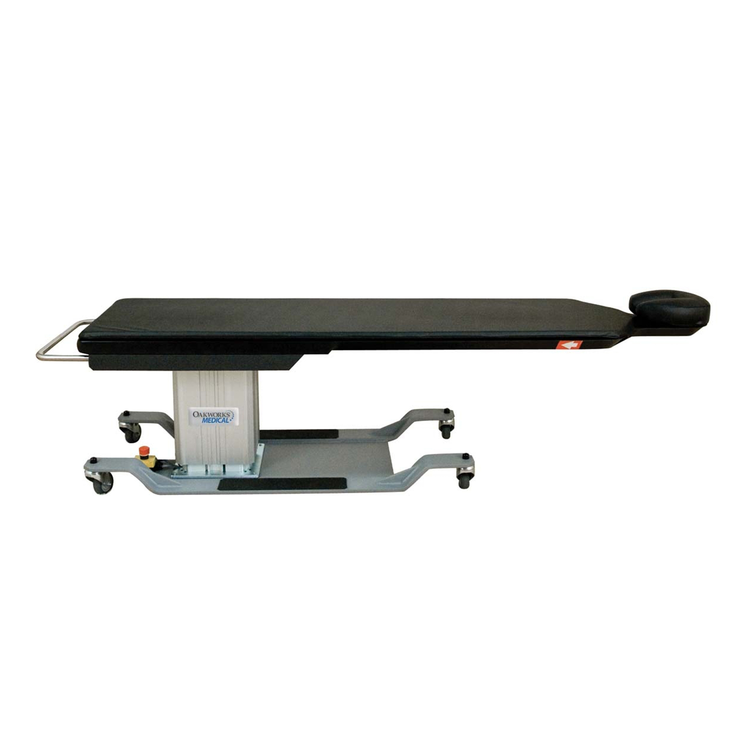 The motorized lift handles patients up to 500 pounds while maintaining table stability during procedures. The integrated headrest eliminates the need for separate positioning equipment, and the included cranial pads let you position patients precisely for spinal and pain management procedures. Worth noting: the soft-touch base material protects your C-arm from scratches during positioning.
