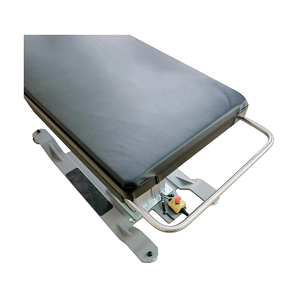 The removable foot control tucks into the base when not needed, and the 22″ × 84″ surface provides ample space for patient positioning without extending beyond most OR footprints.