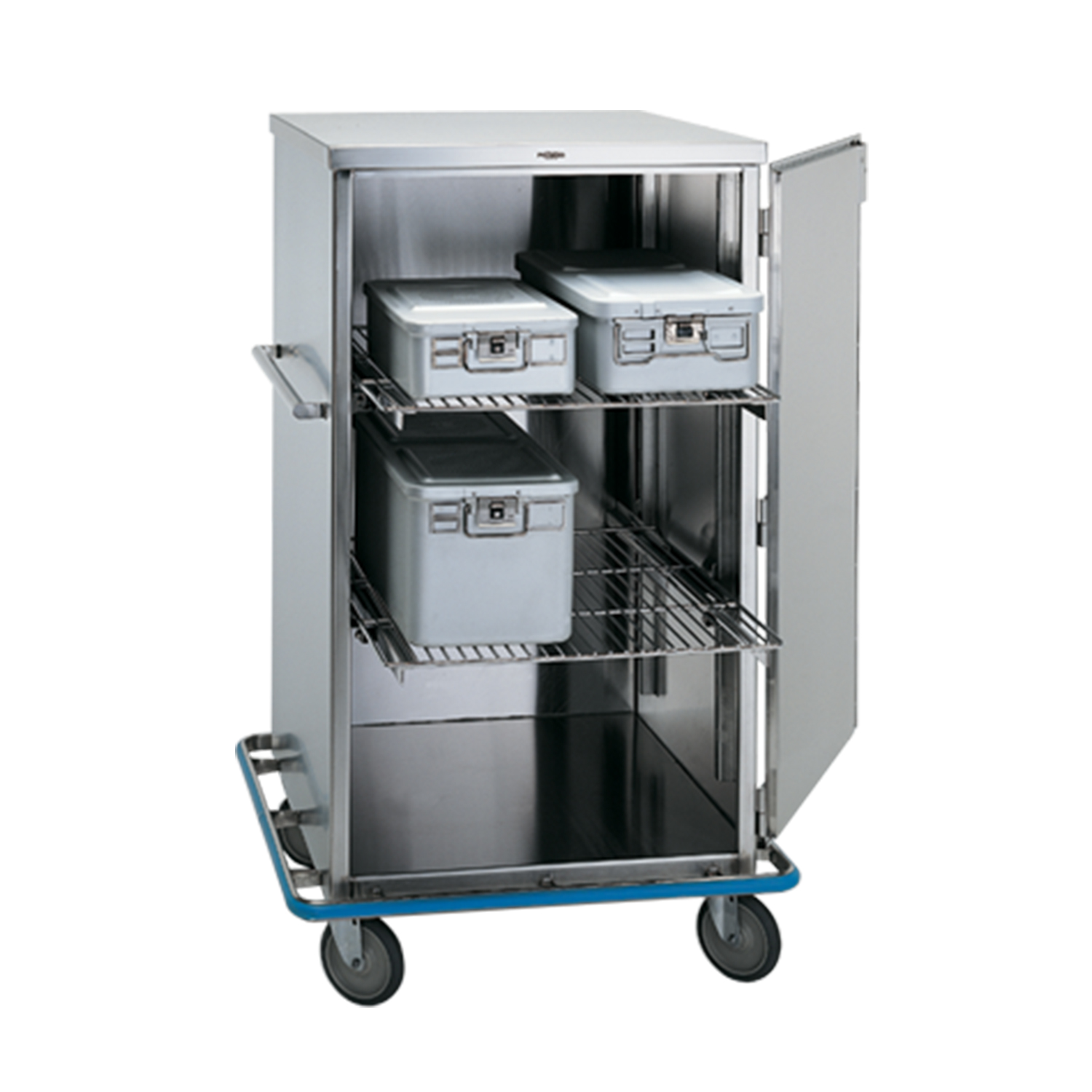 Pedigo CDS-242 Case Cart transports sterile packs with sealed doors and sound-proofed construction. Maintains sterility from Central Supply to OR.