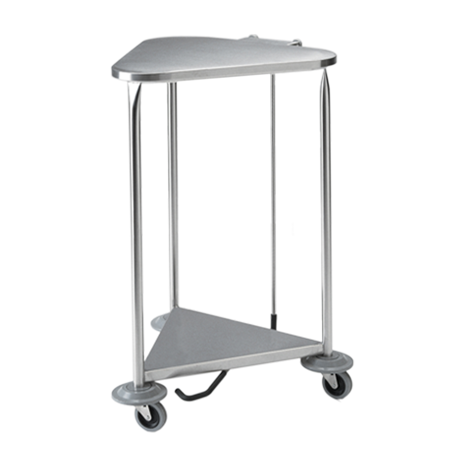 Pedigo Linen Hampers use a triangular footprint to maximize collection capacity while fitting into corner spaces that round hampers waste. The heavy-gauge welded steel construction handles the constant loading and movement that destroys lighter units in high-volume environments like ORs and med-surg floors.