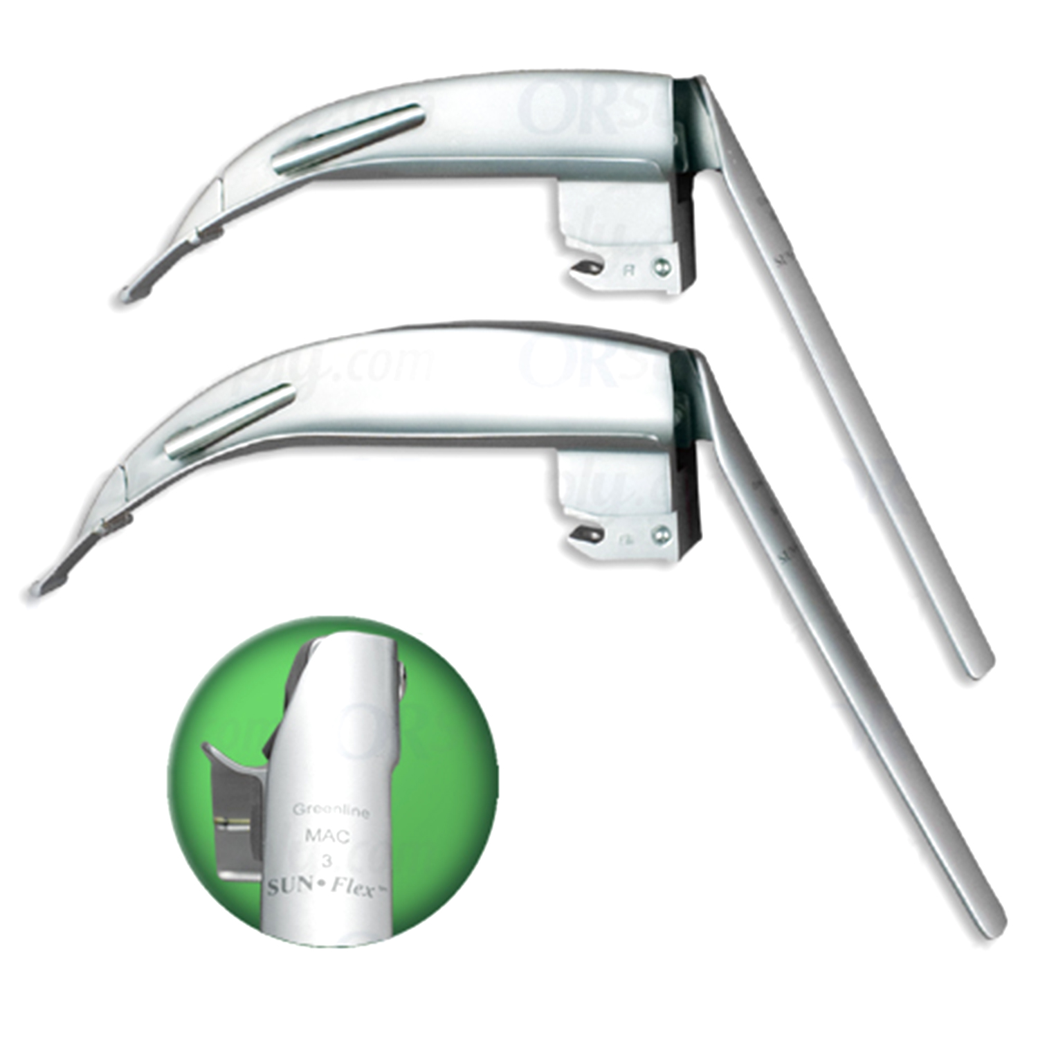 The Sun-Flex’s articulating tip bends to improve epiglottis visualization without the pinching common in fixed-blade laryngoscopes.
